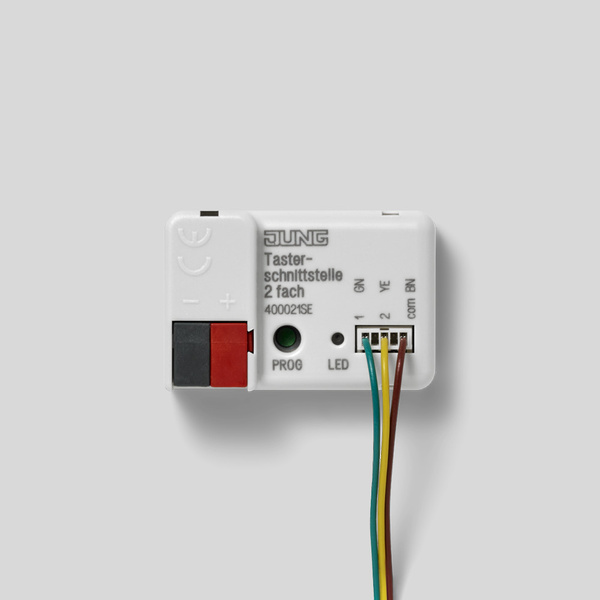 Die KNX Tasterschnittstelle von JUNG erlaubt die nahtlose Integration verschiedener Sensoren und Schalter in ein KNX System. Das ermöglicht eine effizientere und komfortablere Steuerung der Gebäudefunktionen. Taster, Tür-/Fenstersensoren, Hotelcard- oder Schlüsselschalter können über die potentialfreien Kontakte einfach in das KNX System eingebunden werden. Dies ermöglicht eine intelligente Steuerung von Beleuchtung, Heizung, Klimaanlage und anderen elektrischen Geräten. Ein weiterer großer Vorteil der Tasterschnittstelle ist ihre Vielseitigkeit. Sie unterstützt sowohl Leckage- und Betauungssensoren, als auch Temperatursensoren sowie Tür- und Fensterkontakte. Damit können Bauherrinnen und Bauherren die Sicherheit und Energieeffizienz ihres Gebäudes erhöhen. Die Tasterschnittstelle ist in 2-fach, 4-fach und 8-fach erhältlich.